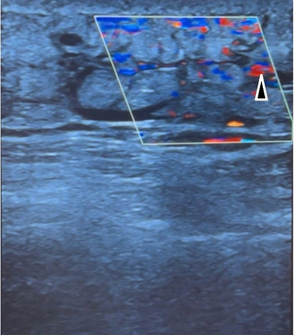 Figure 4. Color Doppler showed increased vascularization of the subcutaneous tissue, which further supports the inflammatory etiology