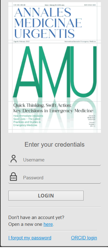 All manuscripts should be submitted via the COMET system, available at the link: https://journal.sdewes.org/amu. First-time users of the system should create an account using their primary e-mail address (screenshot). Only previously unpublished manuscripts are accepted for publication. The manuscript must be accompanied by a signed Authorial Statement (the form can be downloaded from the web site of the Croatian Society for Emergency Medicine hdhm.com.hr) stating that the manuscript has not been previously published in any other journal or book and that it has not been submitted for publication to any other journal. The Authorial Statement should be uploaded together with the manuscript at the initial submission. Annales Medicinae Urgentis is published two times a year and does not charge authors for the submission, processing or publication of manuscripts.